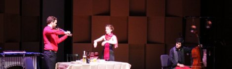MÉLANGE À TROIS is an instrumental theater work, set for violin, cello and percussion. In this voiceless opera, each musician embodies a character in an enchanting tale of misplaced love.
